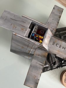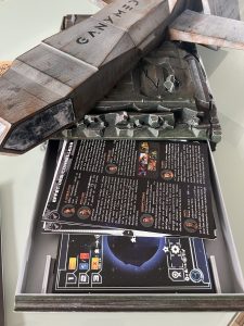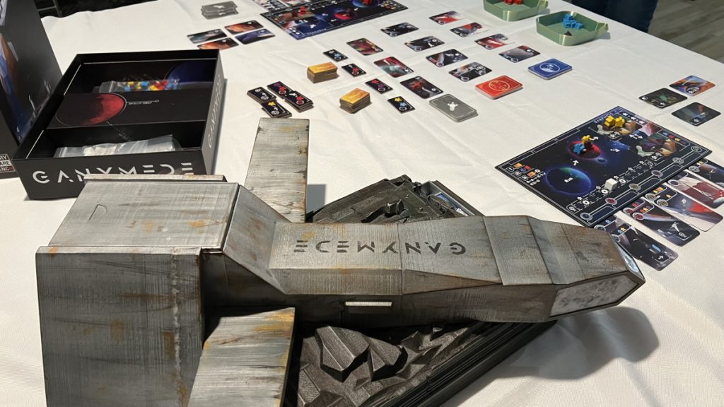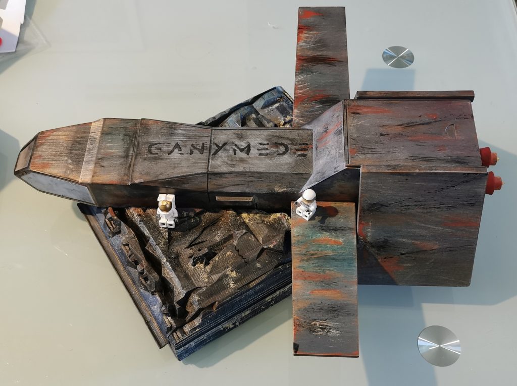 Cette navette n’est pas tout à fait comme les autres, sa particularité c’est qu’elle accueille le matériel du jeu de société GANYMEDE et son extension MOON.