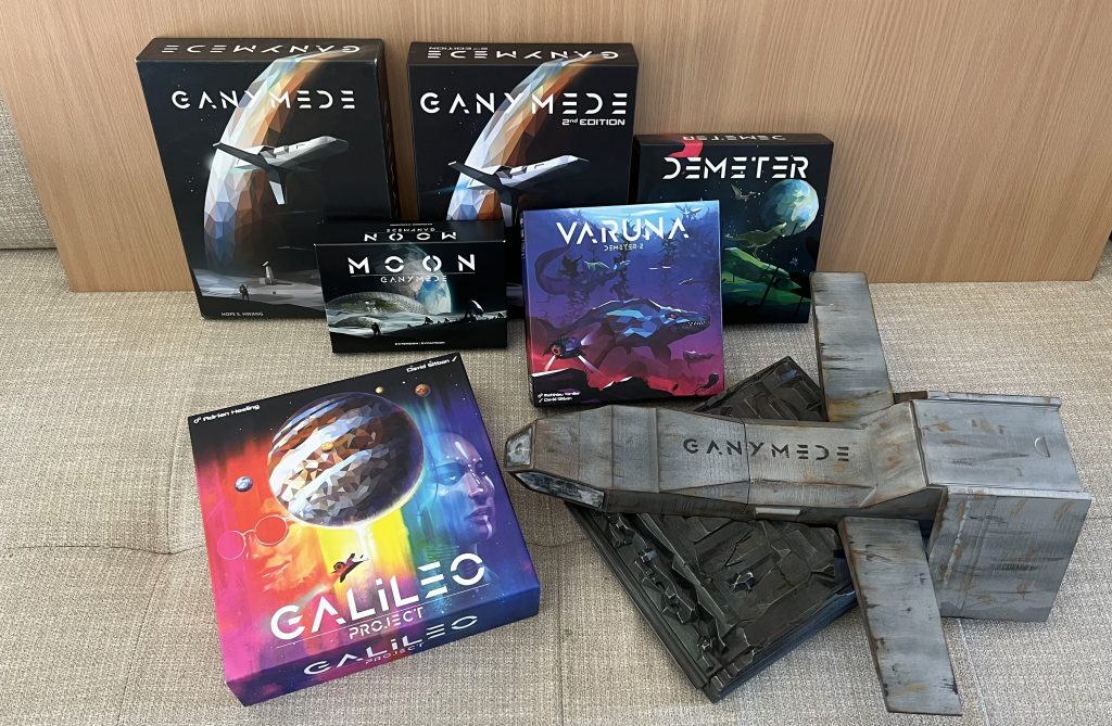 Et voilà la gamme de jeux dans l’univers de Ganymede, proposé par Sorry We Are French, l’éditeur :